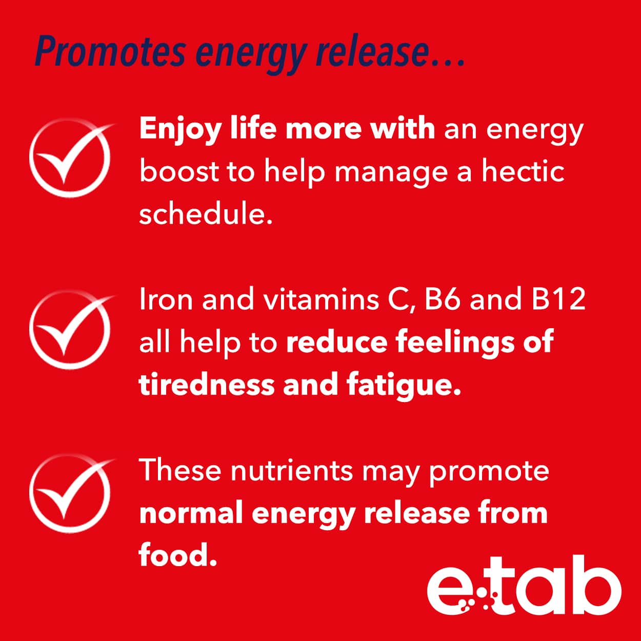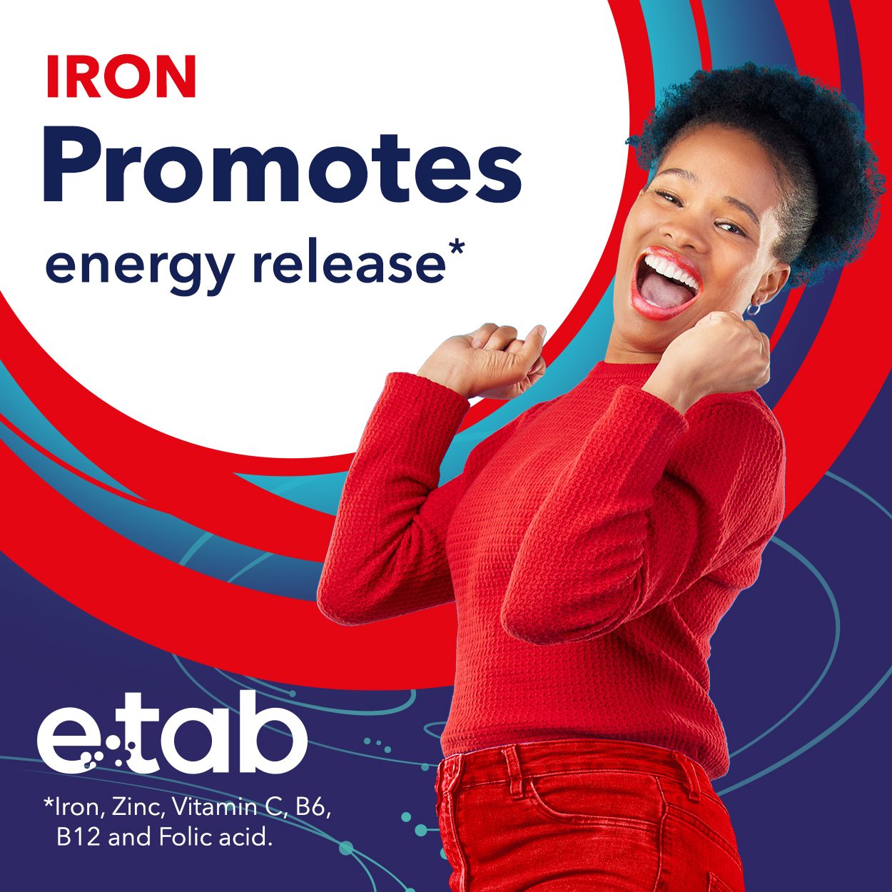 e-tab Iron is formulated with vitamin C, which helps the body to absorb more iron.