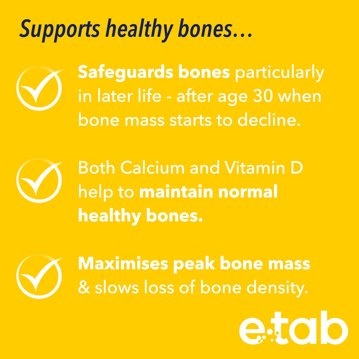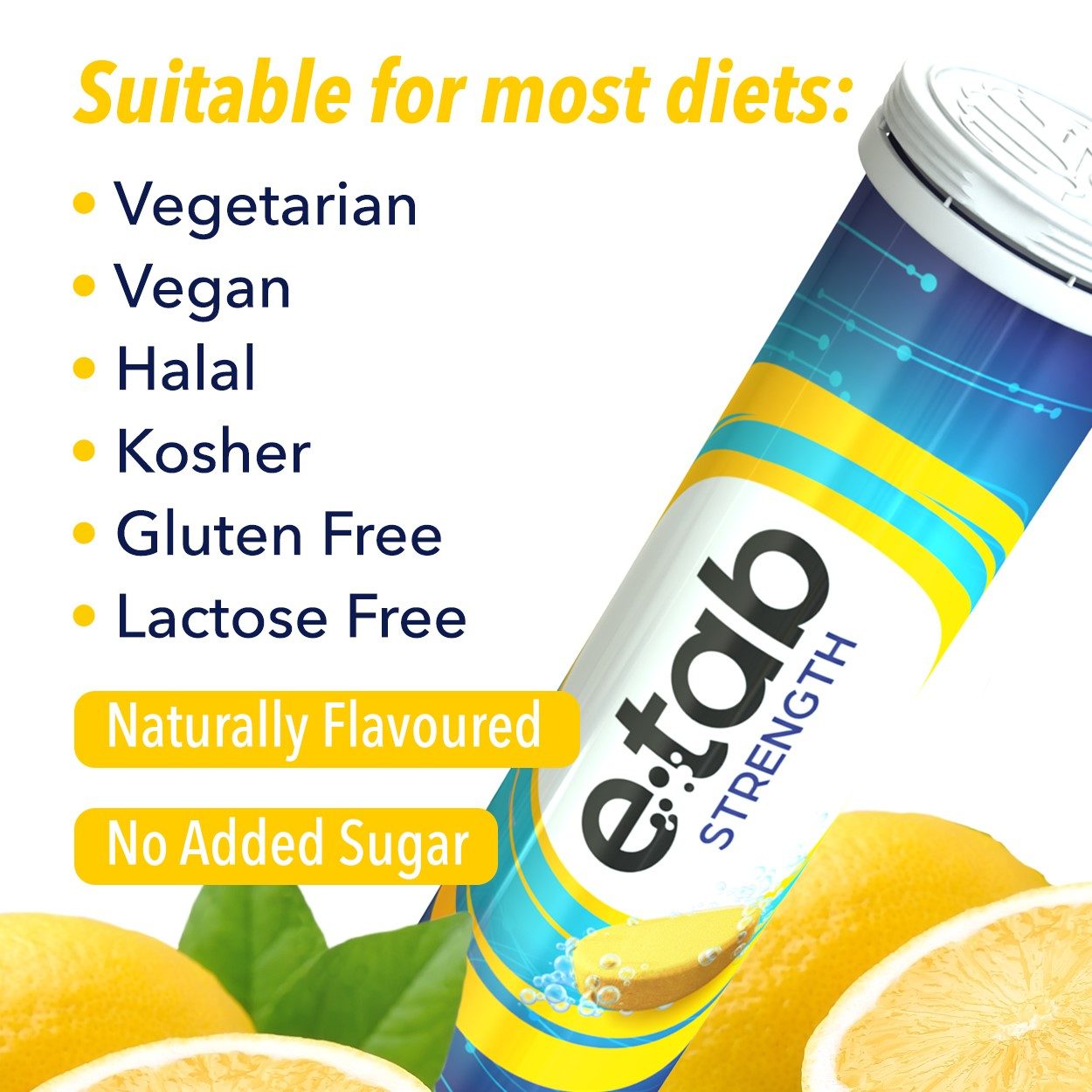 To bolster bone strength and muscular health, e-tab STRENGTH is just what you need! It provides essential nutrients like Calcium, Vitamin K, and Vitamin D in a subtly sweet lemon-flavored tablet.